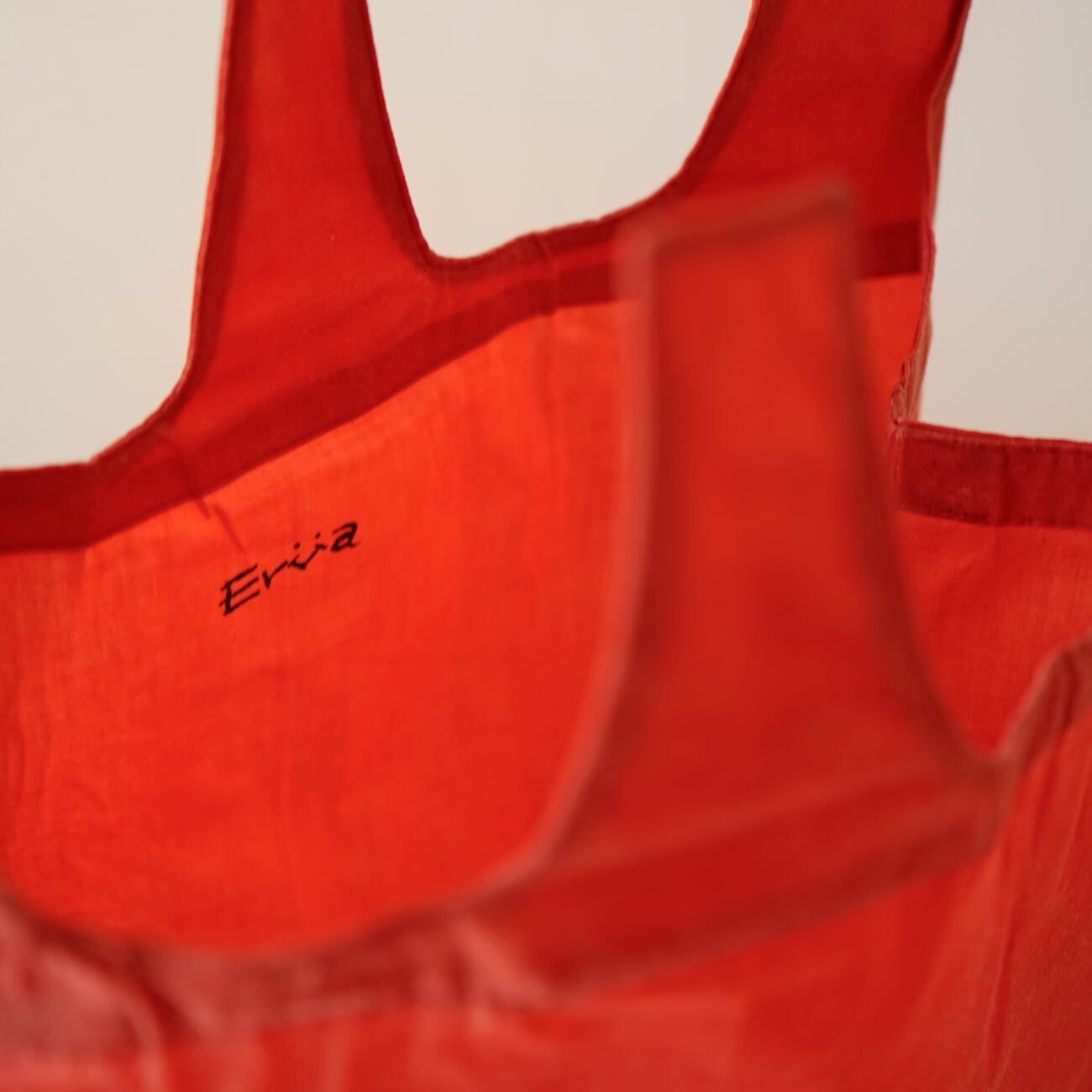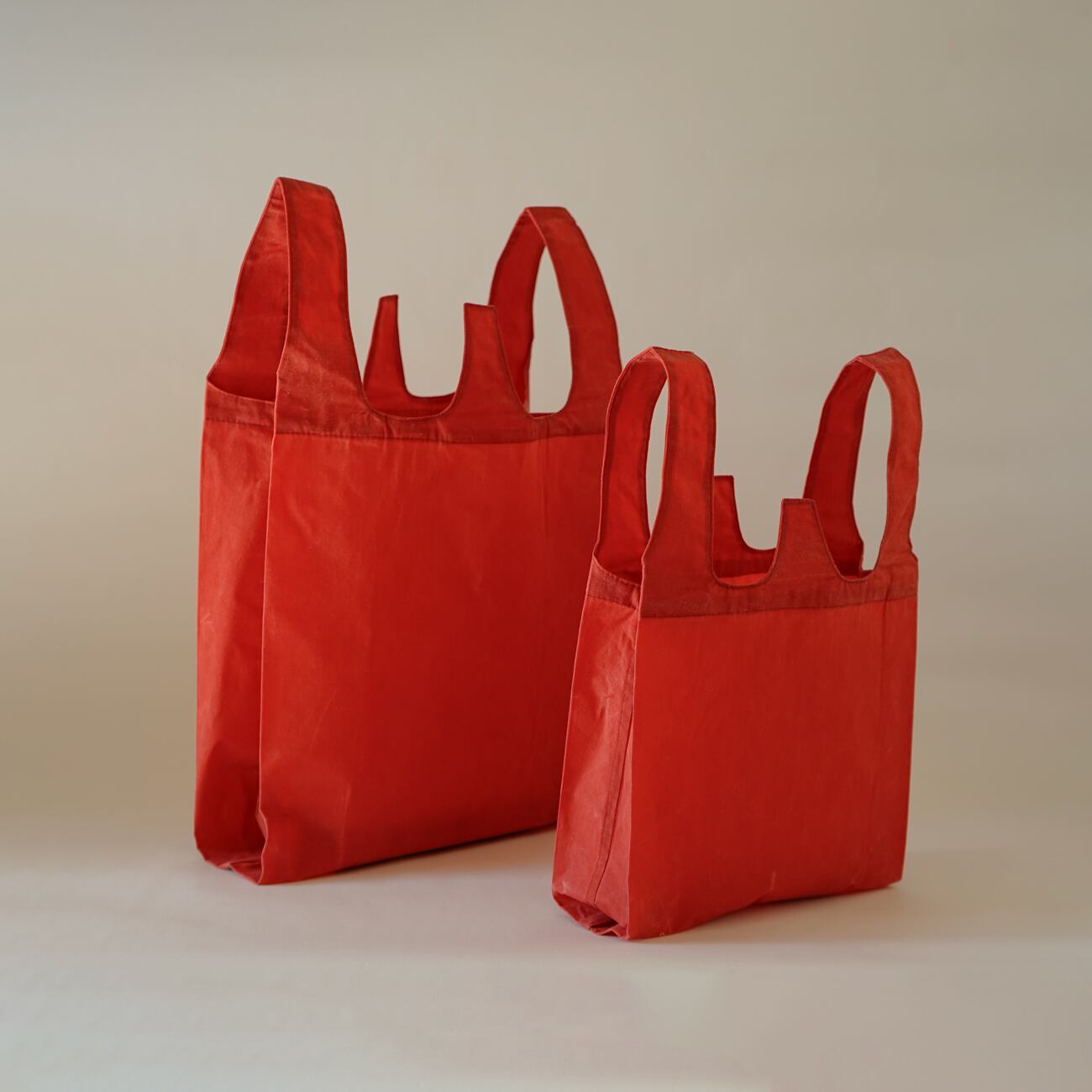 インド茜で染めた、レジ袋タイプのバックのミニサイズ。ちょっとしたお出かけなどにちょうど良い大きさです。ロウを引くことで、撥水性と耐久性も加わり、初めは紙のような硬さのある手触りですが、使い込んでいく内に表情を変え柔らかくなじんできます。