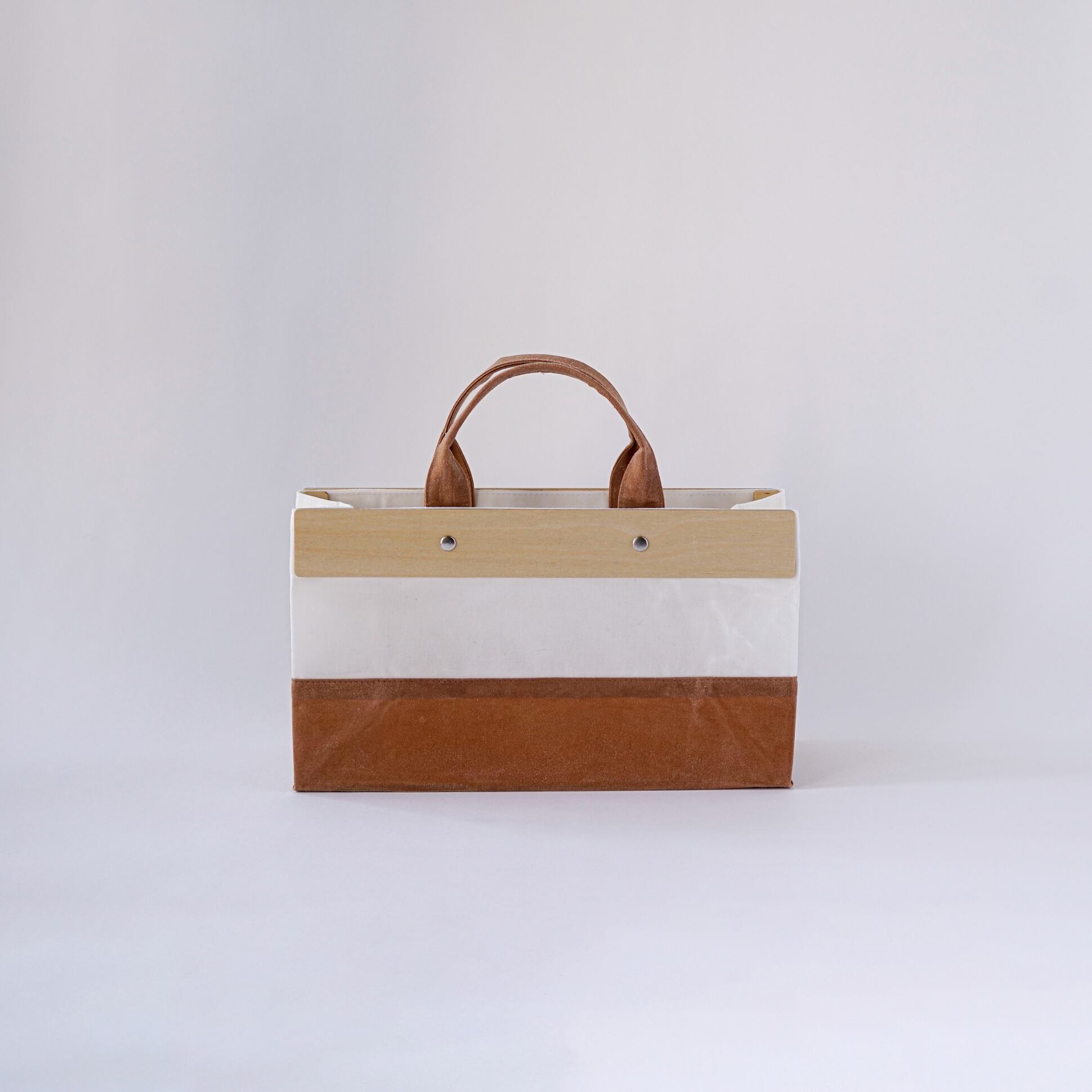 草木染のロウ引きコットンとフィンランドバーチを組み合わせ、暮らしの中のアートピースをめざしたTesageシリーズ。ロウを引くことで、撥水性と耐久性も加わり、初めは紙のような硬さのある手触りですが、使い込んでいく内に表情を変え柔らかくなじんできます。荷物を入れても型くずれしないよう、取り外し可能な底板付き。MINI・TATE・YOKOの3サイズ展開。