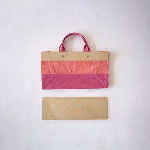 古くから親しまれてきた草木染めの色を、現代の暮らしに合うモダンなデザインのミニトートバッグに仕立てました。草木染のロウ引きコットンとフィンランドバーチを組み合わせ、暮らしの中のアートピースをめざしたTesage(手提げ)シリーズです。ロウを引くことで、撥水性と耐久性も加わり、初めは紙のような硬さのある手触りですが、使い込んでいく内に表情を変え柔らかくなじんできます。荷物を入れても型くずれしないよう、取り外し可能な底板付き。